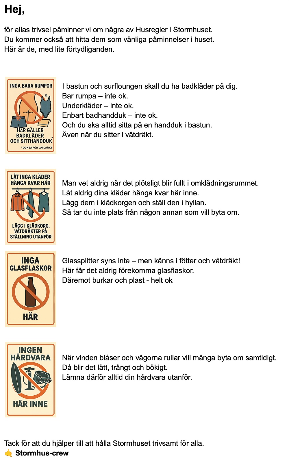 Påminnelse om några Husregler